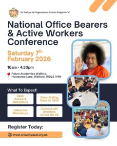 On behalf of the Sri Sathya Sai Organisation UK CIO , the National Team organised the National Office Bearers and Active Workers Conference